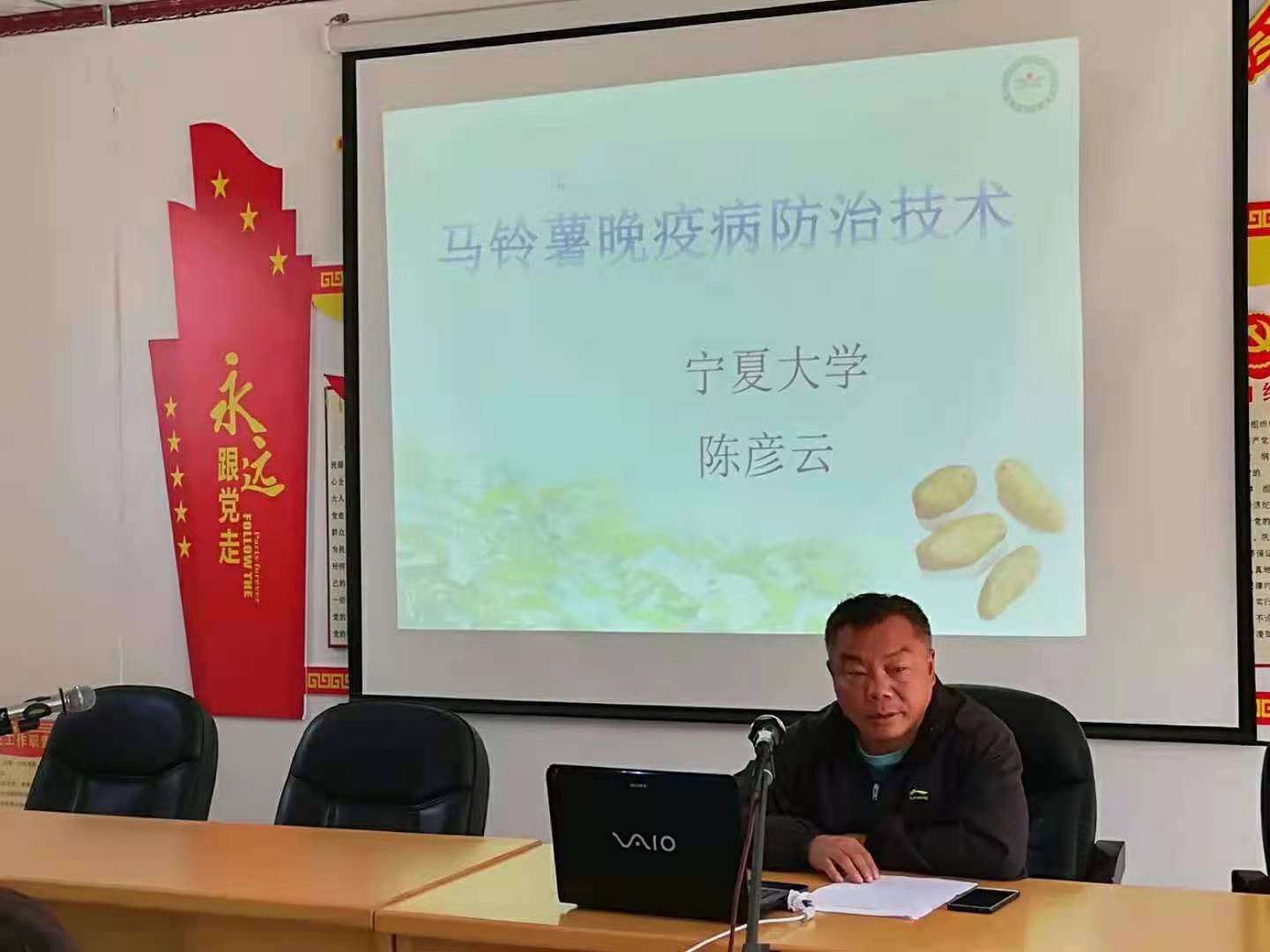2015年陈彦云积极响应自治区号召,主动要求成为一名科技扶贫指导员,投身到农村一线的科技扶贫工作中。长期在西吉、海原等六盘山连片贫困区开展马铃薯生产关键技术研究,先后承担了国家科技支撑计划、星火计划、成果转化专项、科技研发项目等多重任务。他坚持研发、示范、推广、服务一体化推进,在南部山区的西吉、原州、海原等县区,引进推广马铃薯新品种,示范推广马铃薯旱作节水新技术,亩产达到1500公斤以上,增产16.2%;推广马铃薯标准化贮藏技术,使标准化贮藏能力达到50万吨,贮藏损失率由原来的20%降低到10%以内,产生社会效益二十多亿元,支持了六盘山连片贫困地区的产业扶贫,助力宁夏南部山区脱贫攻坚,赢得广大基层干部和群众好评。