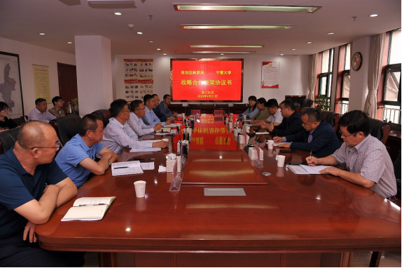 李建设副校长、科技处曹兵处长等一行赴自治区林业和草原局就双方开展科技战略合作事宜进行座谈并签署了战略合作框架协议。