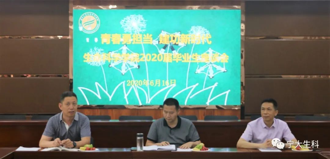 在文萃校区知本楼二楼报告厅举办“青春勇担当·建功新时代”2020届毕业生座谈会,院党委书记王彦庚,院长苏建宇及学院教师代表和2020届毕业生代表参加座谈会,座谈会由院党委副书记何彦平主持。
