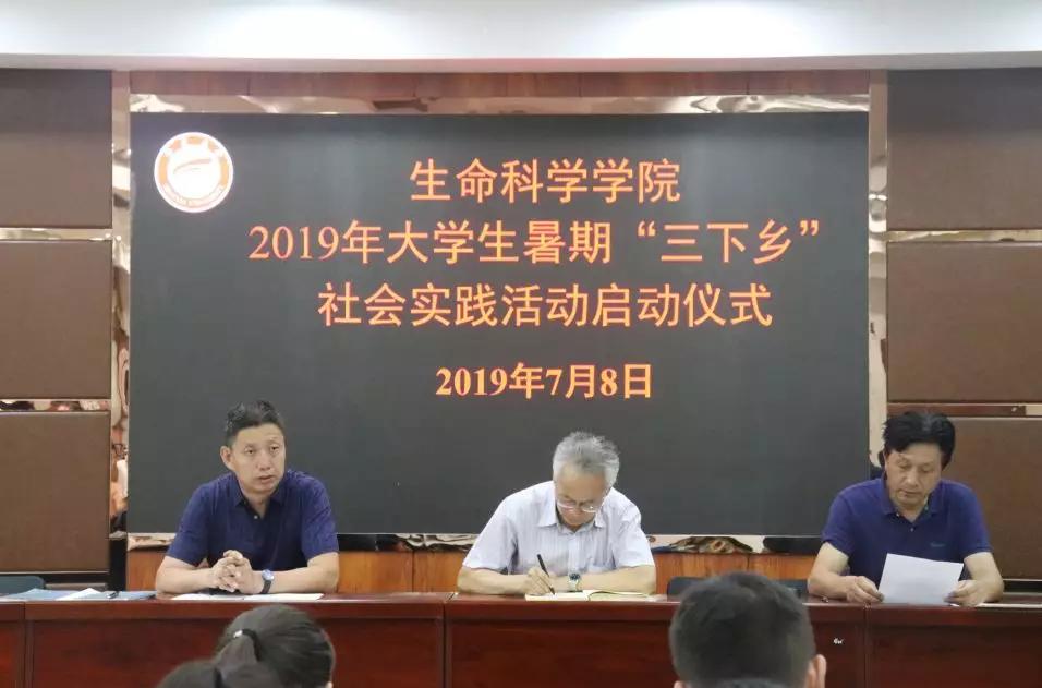 2019年大学生暑期“三下乡”社会实践活动启动仪式在文萃校区知本楼报告厅举行。院党委书记沈岩东,副书记叶志春、何彦平出席会议,各团队指导老师,团队成员参加了会议。