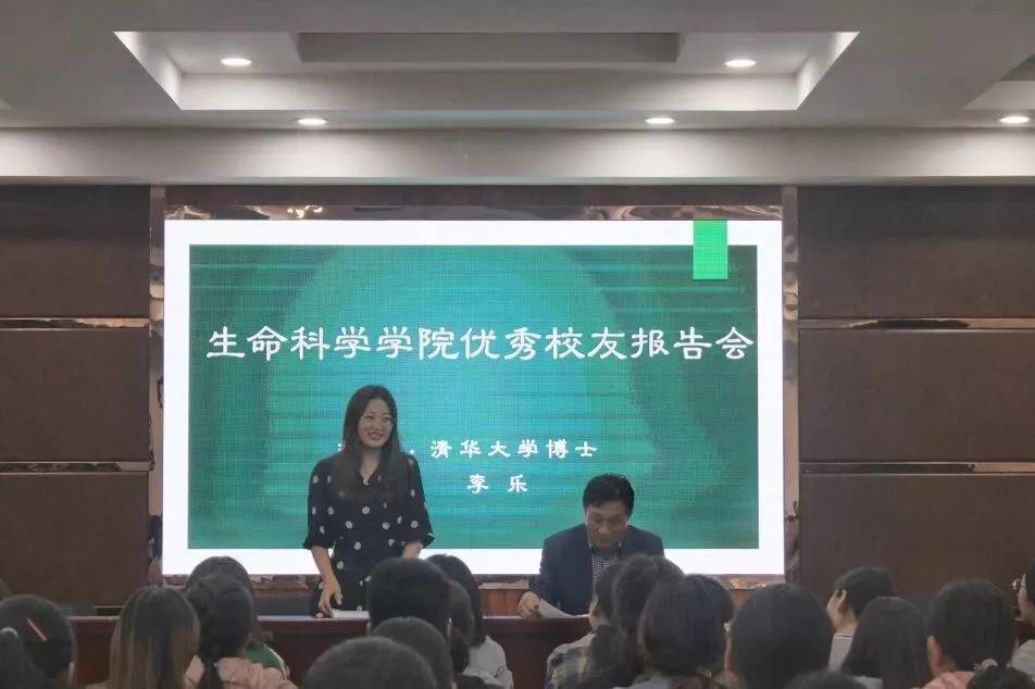 邀请到2014届生物科学(师范)专业本科毕业生、清华大学2019届博士生李乐,为在校研究生做了一场学术报告,为在校本科生做了两场经验分享报告。