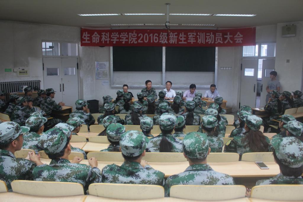 会上,叶志春宣读了学院军训班干部名单和工作组工作职责。苏建宇对学生军训课程考核情况做了说明。何彦平宣读了2016级新生军事技能训练计划、考核规定及军训纪律要求。2016级生物技术专业学生马小勤代表学生发言并做出承诺。沈岩东作了军训动员讲话,他讲到当代大学生在国家国防军事中肩负着重大的责任与义务;要求参训学生端正态度,严格要求自己,尽快转换角色,在军训场上有严格的组织纪律意识和团队意识;通过军训培养爱国主义和英雄主义精神,坚定共产主义理想信念。