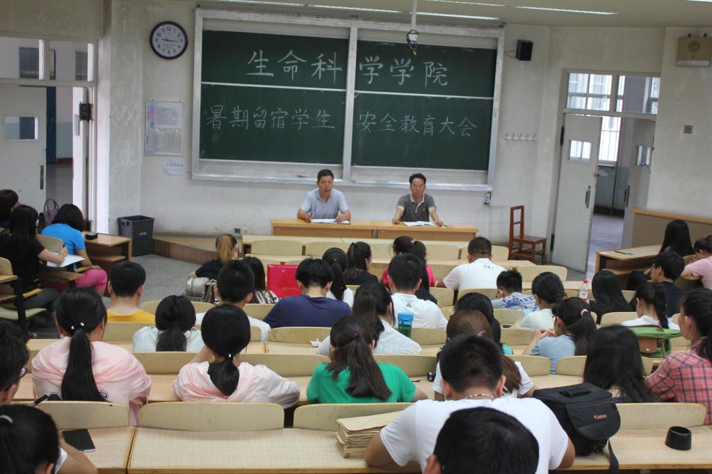 在文萃校区1教131教室召开2016年暑期留宿学生安全教育会议,学院党委书记沈岩东、指导教师以及假期留校参与科研学习和创新创业训练的研究生和本科生参加会议,会议由副书记何彦平主持。