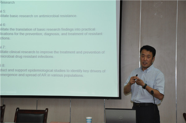 访问期间,李训德教授为全院师生作了题为《Action plans and research for judicious use of antimicrobial drugs in animal agriculture》的学术报告,介绍了动物源性病原微生物在食品安全中的重要性和美国在推动食品安全方面的立法和研究概况。就双方合作开展的自治区重点研发计划项目“养殖场环境病原微生物快速检测和控制技术研究”实施过程中病原微生物快速检测和控制技术等关键技术问题,以及双方人员互访和SCI论文发表等方面进行了深入交流,并就下一步研究工作进行了讨论。